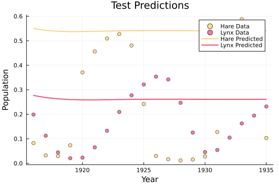plt_test = plot(title = "Test Predictions", xlabel = "Year", ylabel = "Population", legend = :topright)